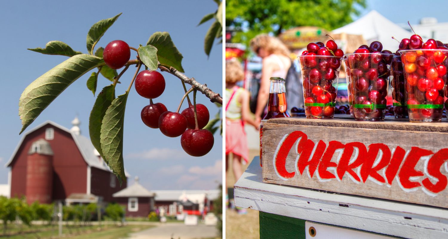 Bei Süßkirschen dominieren klassische dunkle Sorten wie Bing, sowie hellere, gelb‑rötliche Sorten wie Rainier. Süßkirschen werden vor allem im Westen der USA (Washington, Kalifornien, Oregon) angebaut. Dagegen stammen mehr als 60 Prozent der Sauerkirschernte allein aus Michigan. Die Gegend erwies sich als ideal für den Anbau von Kirschen, da der Michigansee im Winter die arktischen Winde mildert und die Obstgärten im Sommer abkühlt. Die hellfleischige Sorte Montmorency (in Europa gar nicht erhältlich) ist in Michigan die wichtigste Kirschart und gilt als typischer „American Pie“-Kirschtyp. Jedes Jahr im Juli findet das National Cherry Festival in der “Kirschhauptstadt der Welt” Traverse City, Michigan, statt.