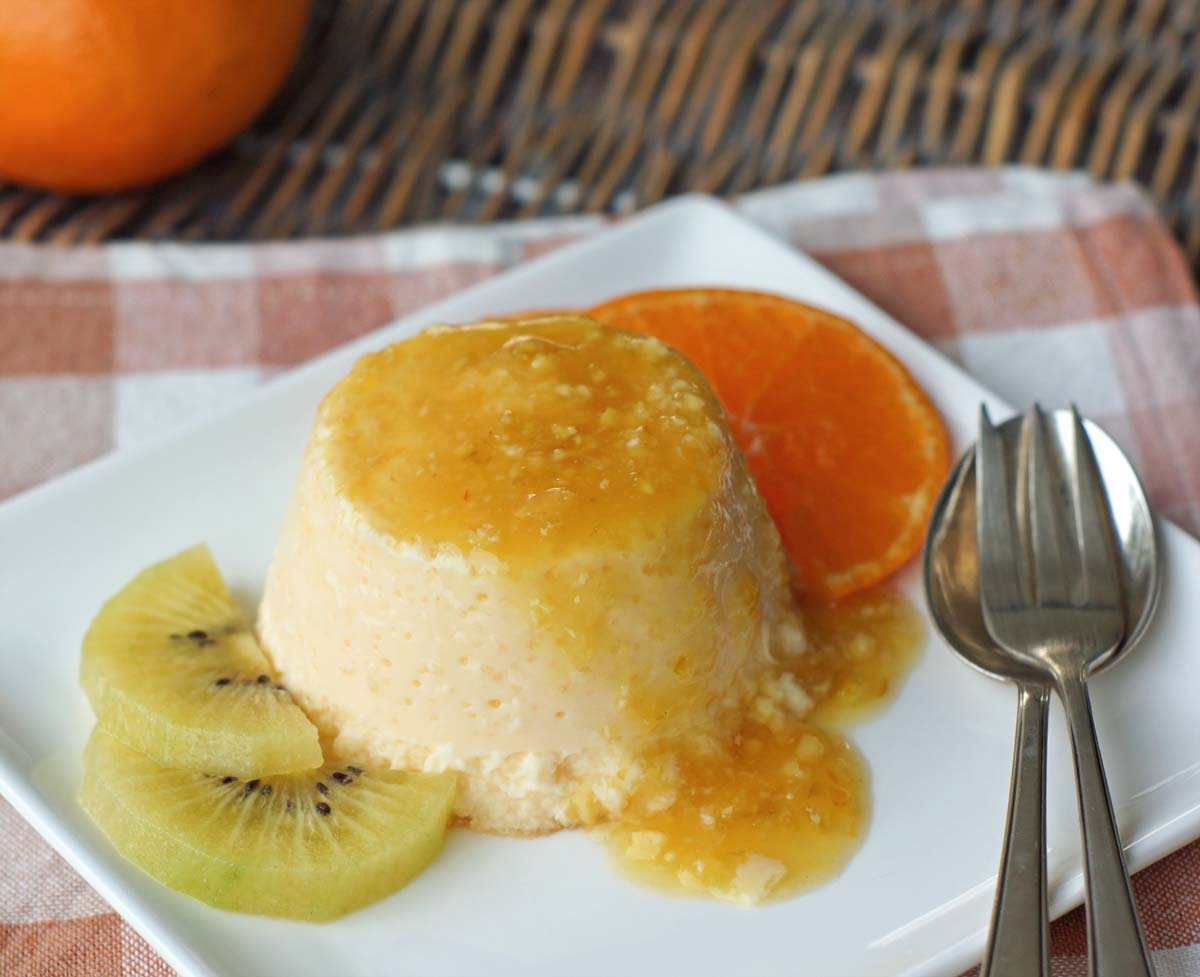 Orange Flan ist Creme Caramel mit einem fruchtigen Twist: Statt karamelisiertem Zucker kommt hier als “Sauce” Orangenmarmelade zum Einsatz.