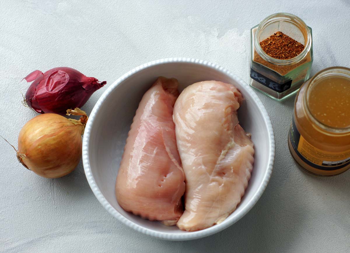 - 4 gr. Hühnerbrustfilets (ohne Haut und Knochen, etwa 800 bis 1000 g)